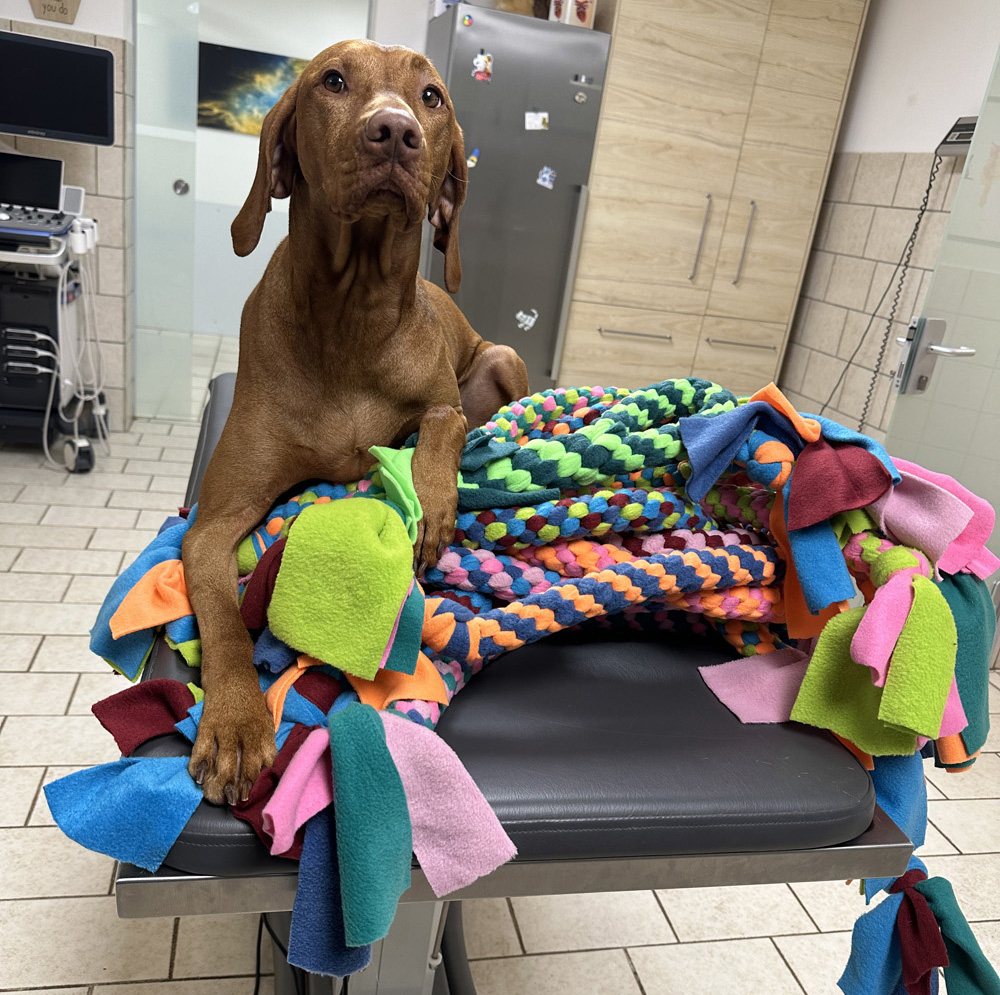 Nein, Carlotta, das ist nicht alles deins! Die Zergel für Hunde, Kräuterkissen für Katzen und andere schöne Dinge finden Sie in unserem Wartezimmer. Viele hat unsere Michaela Hader selbst gearbeitet. Gegen eine Spende zugunsten der TierNotHilfe e.V. dürfen sie gerne zugreifen und für Ihren Hund oder Ihre Katze etwas mit nach Hause nehmen.