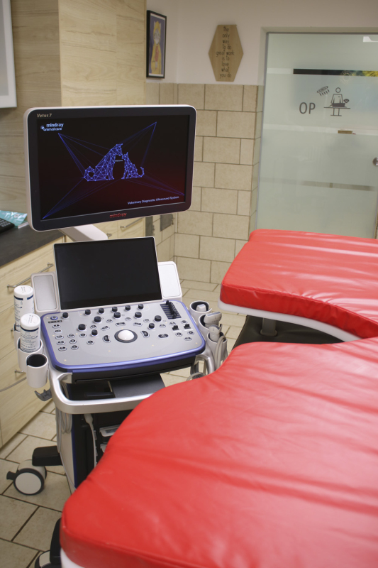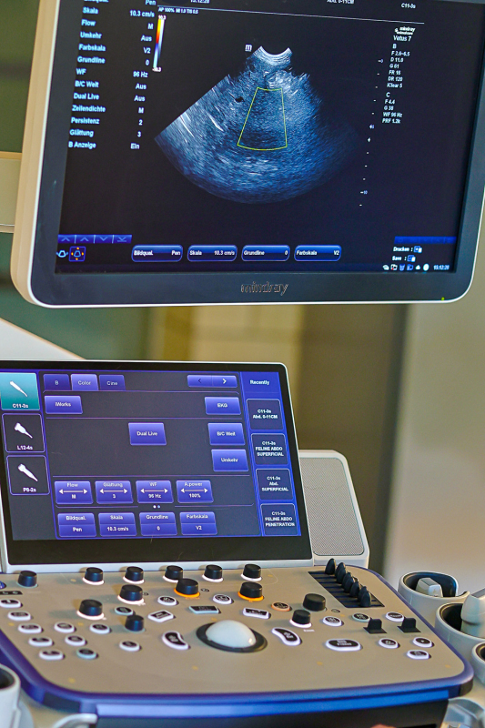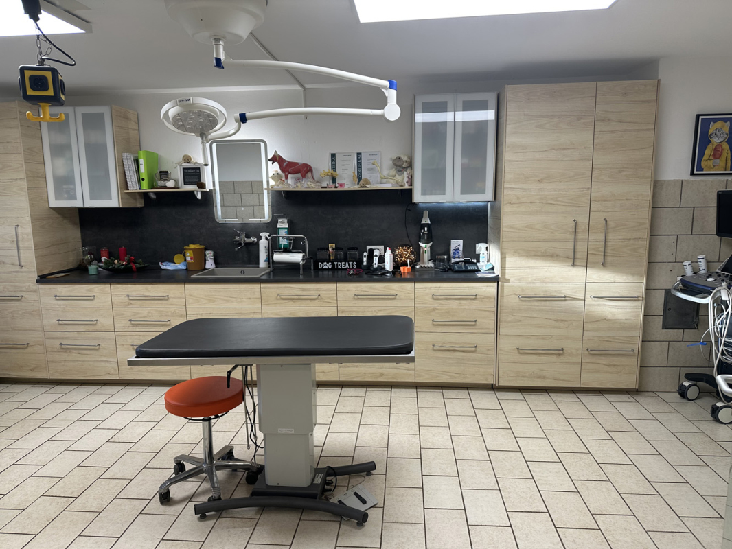 Profunde Diagnostik ist uns wichtig. Deshalb haben wir die Medizintechnik unserer Praxis in den letzten Jahren auf den neuesten Stand gebracht. Digitales Röntgen mit Detektorplatte bedeutet zum Beispiel, dass wir die Aufnahmen innerhalb von 2 Sekunden auf dem PC haben. Die Praxisräume wurden beim Hausbau 1983 als Kleintierpraxis konzipiert. Nach der Praxisübernahme 2021 wurde renoviert, so dass alle Arbeitsabläufe nun optimiert sind.